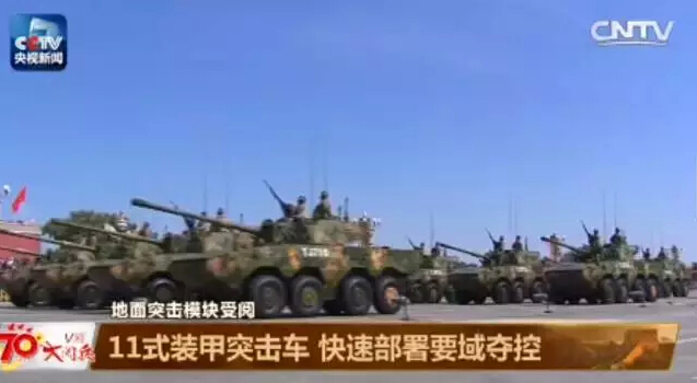 是正在09式根本上改拆的11式轮式拆甲突击车,进行计谋投送可上机、上舰;伤能力大火炮毁,役从和坦克可以或许对于现,间接火力援助为步卒供给,力量的从和配备是陆军快速反当。