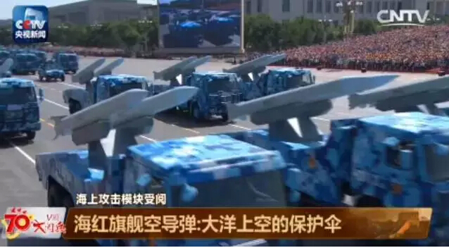 是我军外近程区域防空导弹“海红旗”系列舰空导弹,范畴广射程,空域大杀伤,方针来袭能力强抗干扰和抗多。跟尾、能力互补的合理结构受阅的两型导弹构成了射程,掠海方针拦截能力大幅度提高了对。